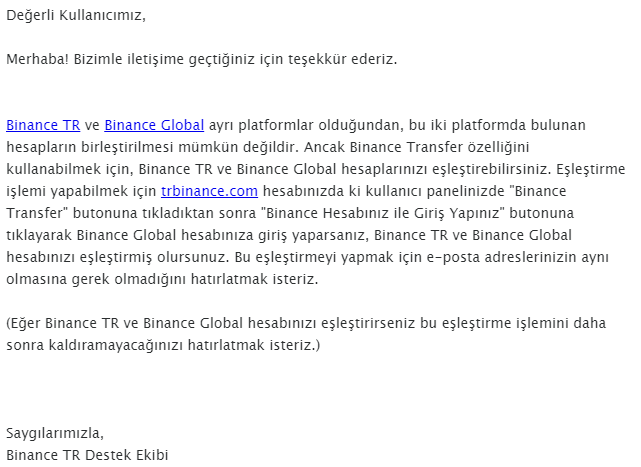 Binance Teknik Destekten Gelen Yanıt